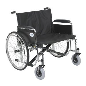 700 lb. Weight Capacity. Carbon steel frame with TRIPLE coated chrome for an attractive, chip-proof, maintainable finish. Reinforced steel gussets at all weight bearing points provide additional strength. Durable reinforced nylon upholstery. Extra large, padded armrests provide comfort and support. Steel, spoke wheels are strong and maintenance free. Precision sealed wheel bearings in front and rear ensure long lasting performance and reliability. Extra large heavy duty, aluminum footplates provide maximum support, are attractive and crack proof. Heavy duty, flat free 8" front casters. Extra heavy duty front forks. Reinforced side frame, caster journals and dual cross bars. Comes with push to lock wheel locks. Color: Black upholstery, chrome frame. Limited Lifetime Warranty.Read more Drive Medical Sentra EC Heavy Duty Extra Wide Wheelchair with Various Arm Styles Arms, Black, 30"