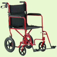 It also has attendant operated wheel locks for easy use. This chair provides safe and comfortable transportation for users up to 250 lbs. Features * 250 Lb weight capacity * 8" Front urethane casters and 12" rear wheels * Black Nylon Upholstery is flame retardant and bacteria resistant. * Full Padded Armrests add additional patient comfort. * Seat positioning strap * The fold-down back and lightweight aluminum frame combine for easy transport. Specifications * Arm Style: Full-Padded Armrests add additional patient comfort along with the padded seat and back. * Back Height: 17 1/2" * Color: Blue or Red Frame with Black Nylon Upholstery * Footrest: Swing away footrests with Composite footplates * Overall Depth: 24 1/4" without front riggings * Overall Height: 37 1/2" * Overall Width: 23 1/2" * Product Weight: 19 lbs without front riggings * Product Weight Capacity: 250 lbs. * Rear Wheel Size: 12" * Seat Depth: 16" * Seat To Floor Height: 19 1/4" * Seat Width: 19" * Warranty: 13 months