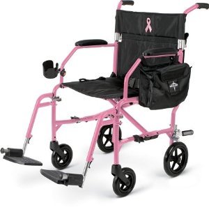 MDS808200F2P Frame Color: Pink- Breast Cancer Awareness Features: -Transport chair.-Back folds down for easy storage and transport.-Back side features bottle holder, key ring, cell phone pocket, identification holder and pocket for billfold or iPod.-Include comfortable nylon upholstery, convenient cup holder, seat belt for safety and 8" rear wheels.-Convenient carrying handles on seat with restaurant-style permanent armrest. Dimensions: -Dimensions: 32.25" H x 9.3" W x 23" D.Read more Freedom 2 Transport Chair Frame Color: Pink- Breast Cancer Awareness